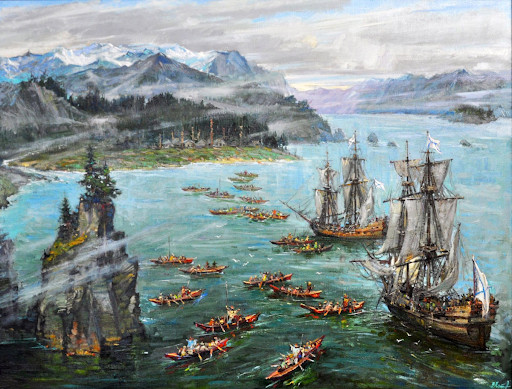 Тут, наверное, стоит сказать несколько слов об Аляске, которая представляется нам (отчасти благодаря фильмам об американских золотодобытчиках) снежной пустыней. Это представление недалеко от истины, львиная часть полуострова именно таковой и является, но вот южный берег полуострова с многочисленными островами и архипелагами, омываемый теплым Аляскинским течением и отгороженный от студеных северных ветров внушительной горной грядой — райское место, где минусовая температура случается редко, а море не замерзает круглый год. Кроме упомянутых сивучей и каланов местные воды богаты китами, разнообразной рыбой и моллюсками, а берега полны пушным зверем и пригодны для сельского хозяйства. Именно с освоения островов и начинали русские купцы. Плавания за добычей из Камчатки занимали иногда по нескольку лет и были весьма опасны, причем опасность, в первую очередь, исходила от местных жителей, которым идея платить пришельцам ясак отчего-то не пришлась по душе. Да и лишние промысловики, ведущие добычу зверя в необыкновенно огромных, по мнению алеутов, индейцев и эскимосов, масштабах на исконно принадлежащих им землях, не могла понравиться местным жителям. Тут, наверное, стоит немного притормозить ход повествования, и сказать, что появившиеся уже в наше время красивые легенды о том, как русские обихаживали и осваивали эти благодатные земли, не совсем верны (или совсем не верны) — численно «русских американцев» всегда было очень мало, вербовать переселенцев было попросту не из кого, поэтому купцы вербовали своего рода «вахтовиков». Организовывать такими силами добычу было невозможно, и использовалась принципиально иная технология, уже отработанная на континентальных землях: захватывались поселения, которых принуждали (вовсе не дипломатическим искусством) платить ясак. Пытки и взятие заложников были занятиями обыкновенными, словом, колонизаторы — это вовсе не добытчики и хлеборобы, это надсмотрщики. Не случайно в такие команды охотно брали людей с устрашающей репутацией, благо отбывших срок каторжан, которым долго, дорого и сложно было добираться до родных мест, в Сибири хватало. Ружья и пушки решало дело, и под угрозой истребления на удовлетворение купеческих нужд трудилось большое количество местных жителей.