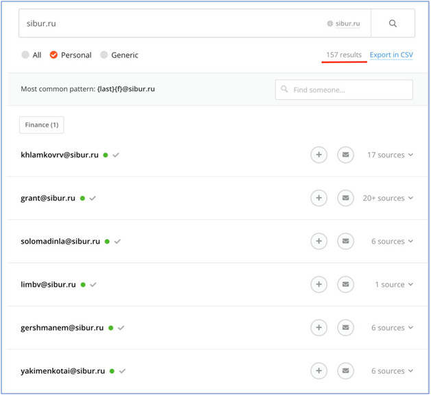 LinkedIn. Если адреса нет, помогут сервисы hunter.io или snov.io — проверяем корпоративный
