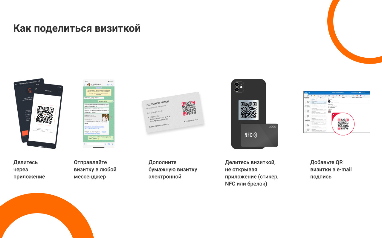 Если вдруг вы слышите про электронные визитки впервые, то стоит рассказать, как можно поделиться электронной визиткой.