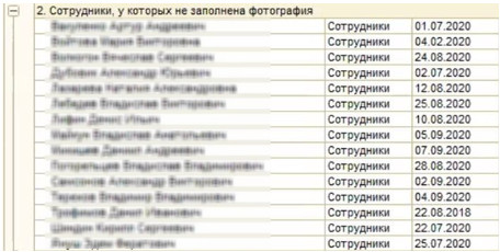 сотрудников без фотографий, уведомляя управляющих магазинами. Наличие