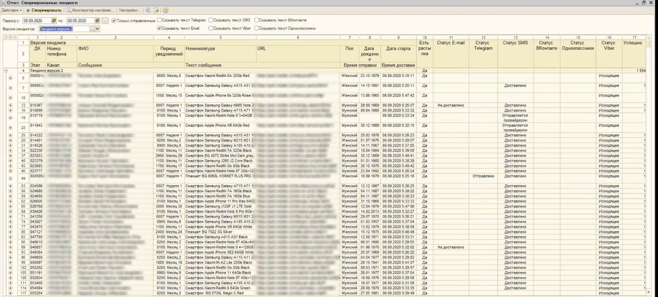 по обзвону «получателей подарков» сохраняли в 1С, проверяя факт и скорость