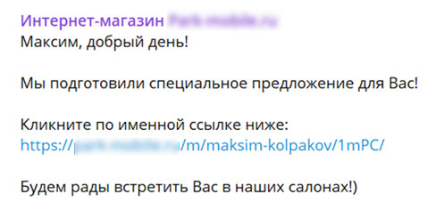письма выглядел примерно так: «На персональном лэндинге site.ru/m/aleksandr-ivanov была заполнена форма обратного