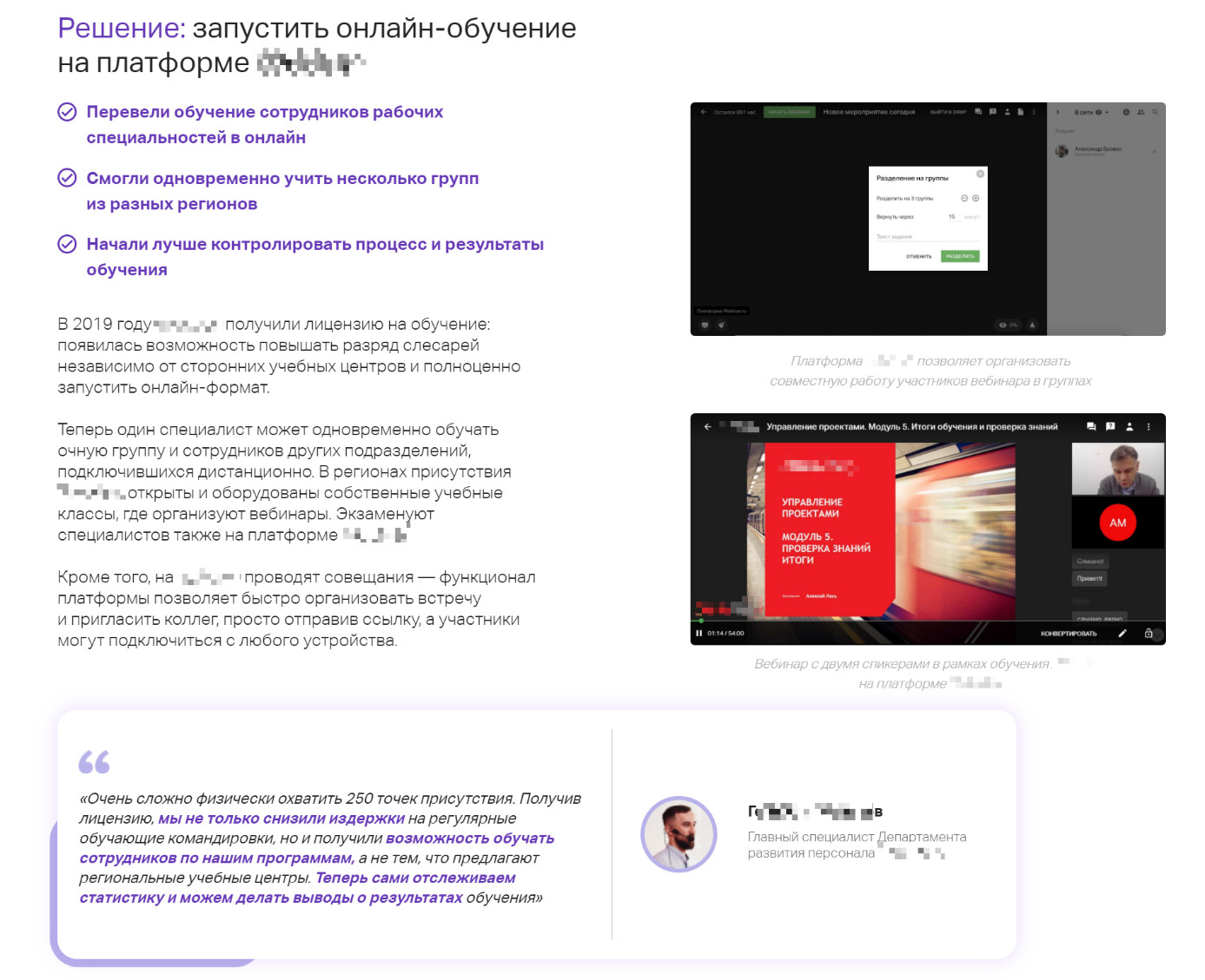 онлайн-обучением, получать больший охват аудитории дешевле, уменьшить командировочные
