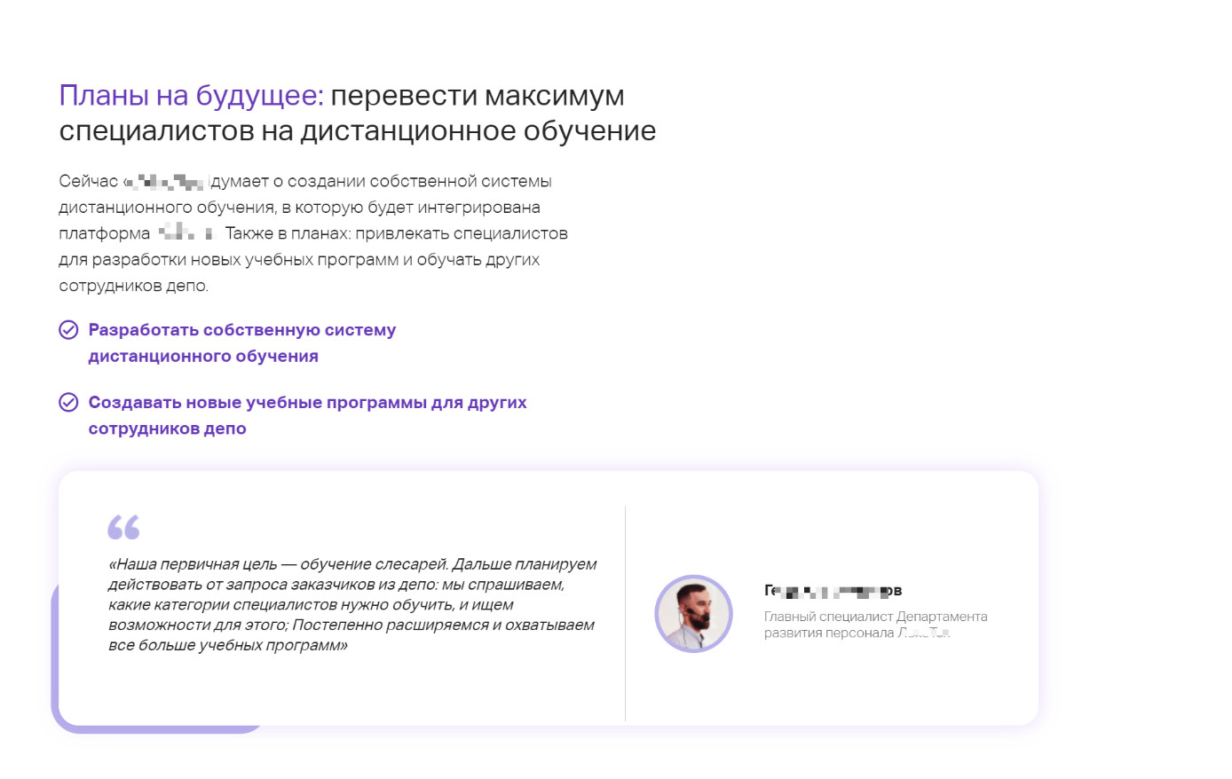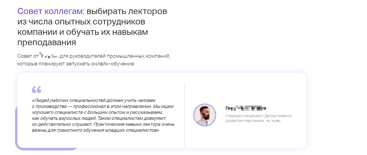 Рекомендации от клиентов по внедрению ЗаголовокТекст пунктамиЦитата [Советы коллегам: делать это, это и это]Наставления по выбору сервисов, старту проекта и специфике отрасли.Перечисляем, если рекомендаций много, либо ставим несколько коротких цитат.