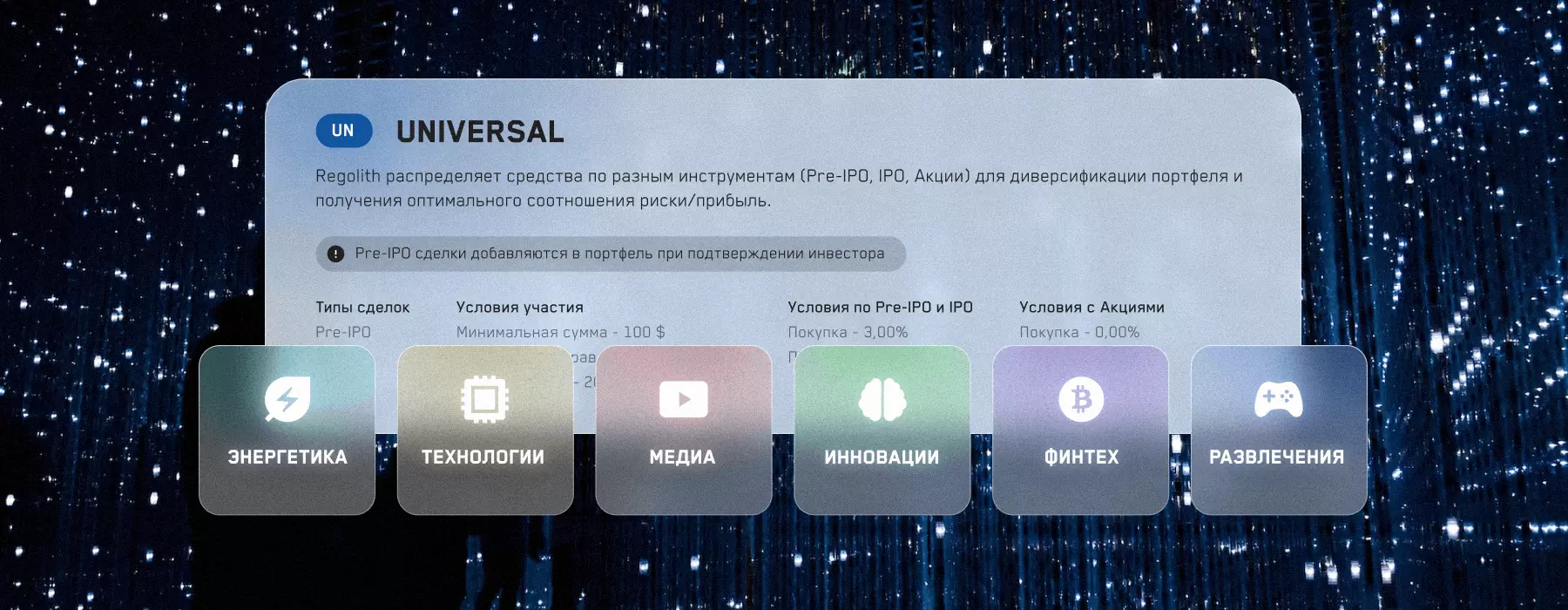 В первую очередь мы будем формировать диверсифицированный портфель из разных секторов и компаний, где есть большой объём накопленной экспертизы за долгий период анализа и торговли на фондовом рынке. Структура портфеля может сильно меняться в зависимости от рыночной ситуации. На растущей фазе мы будем держать позиции долго, срок может варьироваться от месяца до года, но инвестиционный тезис будет сохраняться. При неопределенных фазах рынка, к примеру, как сейчас большая часть позиций может закрываться и в течение недели-месяца. У нас есть четкие лимиты по риску, странам и индустриям. После наполнения портфеля в течение месяца в письме для инвесторов вы сможете увидеть структуру портфеля и комментарий по его составу. Структура портфеля будет выглядит примерно так: Энергетика — это цикличный рынок, и он хорошо подчиняется законам спроса и предложения. Там, где сейчас недостаток предложения, рано или поздно спрос будет удовлетворен. Значит в нашем портфеле будут именно те компании, которые смогут на этом заработать, начиная от продолжающегося тренда зеленой энергетики в Европе до подешевевших сырьевых компаний, без которых мир не сможет обойтись в текущих реалиях. Технологии в разрезе удорожания металлов ряд компаний-производителей могут потерять часть прибыли, это даст возможность купить лидеров секторов с конкурентными преимуществами по более низким ценам. С учетом всех фундаментальных параметров таких как уровень долга, затрат на R&D, рост ставок и инфляции, а также некоторая пауза в глобализации дают нам возможность отобрать наилучшие компании в этом секторе. Приоритет будет сделан на сервисные софт-компании, которые имеют наиболее стабильную бизнес-модель, направленную на рост, и имеют наименьшую зависимость от мировых потрясений. Медиа — этот тот сектор, который будет развиваться и дальше вне зависимости от рыночного сентимента, это даже лучше, чем вода, воду люди будут пить всегда, но их лояльность бренду не настолько устойчива, а вот завоевав себе своего зрителя/подписчика, удерживать его чуть дешевле, чем искать нового. Поэтому стоимость привлечения новых пользователей будет продолжать расти. Рекламные контракты с учетом инфляции будут расти. Демпинговать низкими ценами для привлечения новой аудитории будет сложнее при росте ставок. Следовательно, выиграют те, кто уже имеют лучшую аудиторию и лучшую маркетинговую стратегию. Мы уже нашли такие компании. Инновации — дополненная реальность и искусственный интеллект определенно часть нашего будущего. Возможно, скоро вы будете ездить в беспилотном такси, находясь в этот момент во вселенной эльфов с рекламой Макдональдса. Всем этим займутся компании, успехи которых рынок начинает закладывать в цену уже сейчас. Финтех — есть банки-динозавры, которые останутся решать текущие операционные проблемы с переводами, а есть блокчейн компании, которые уже продают свои решения и делают свою инфраструктуру для решения всех этих задач не первый год. Переток кадров из старых монолитных структур в технологичные финтех компании говорит о будущем именно в контексте блокчейна. На рынке транзакций впервые появляются новые игроки, за которыми не все поспевают. Развлечения — пандемия неплохо подтолкнула индустрию онлайн развлечений. Тут нашими целями будут как компании мо