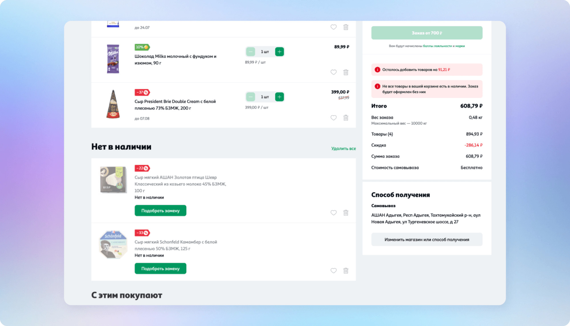 Из-за такой особенности пользовательского поведения в корзине оказываются товары, которые выходят из наличия. В итоге снижается средний чек, а в крайних случаях человек вообще отказывается от покупки, потому что нет того товара, ради которого составлялась корзина.