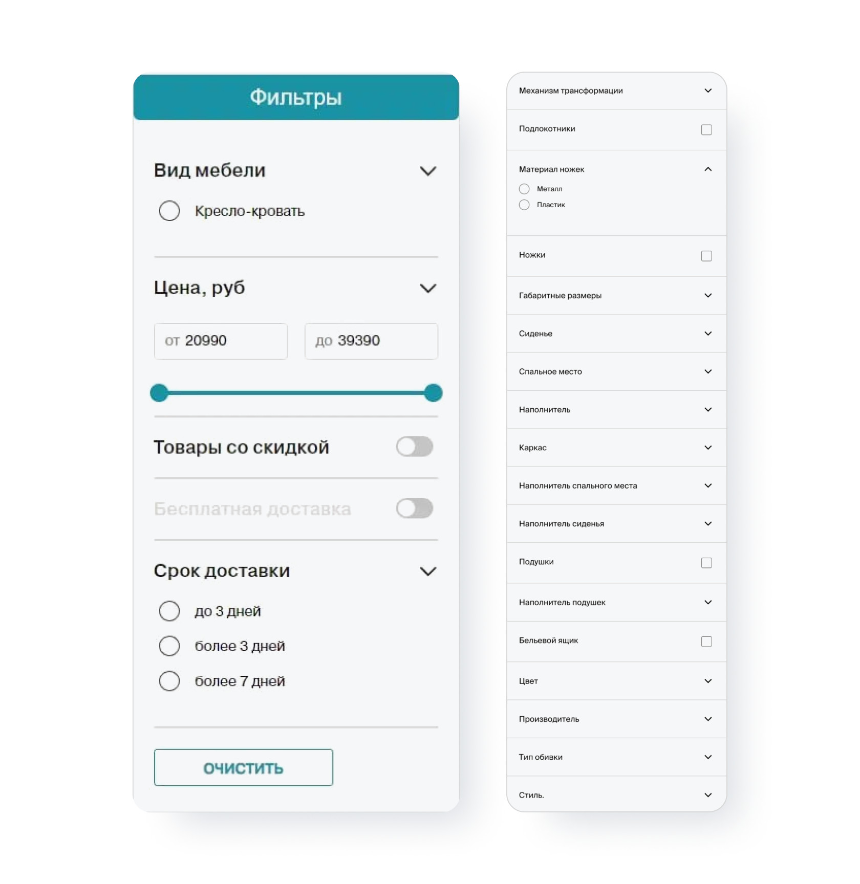Наполнили фильтры и наполнили карточки товаров. Добавили новые фильтры, изменили логику наследования фильтров, дополнили описания товарных карточек. Теперь покупатели быстрее находят нужные им товары, что привело к увеличению конверсии. Доступность, цена и другие атрибуты товаров интернет-магазина могут отличаться в зависимости от региона, склада и торговой точки. Существуют магазины с тысячами складов, атрибуты товаров в которых отличаются. Для каждого склада могут быть свои рекомендации за счёт различного поведения покупателей и различных атрибутов товаров, в первую очередь доступности. Системе рекомендаций необходимо правильно учитывать эти атрибуты в зависимости от региона покупателя. Статья: «Необходимые свойства качественных рекомендаций в e-commerce» Устранили различия между мобильной и десктопной версиями. Устранение различий помогло обеспечить единое визуальное восприятие интернет-магазина на всех устройствах. Пользователям стало легче ориентироваться, а команде интернет-магазина теперь не нужно тратить дополнительные ресурсы на поддержку двух версий сайта. Чтобы приобрести товар, 90% людей в среднем переключаются между тремя устройствами. Для покупателей это удобно, а бизнесу создает трудности. Он не понимает — это один посетитель или разные? Данные дублируются, статистика становится некорректной. Непонятно, к какому источнику трафика и покупателю «относить» покупку. В итоге подбирать рекомендации и управлять рекламой становится сложнее. Статья «Как Retail Rocket решил проблему кросс-девайсных рекомендаций» Cross Device Visitor (CDV) — это система, которая умеет определять одного и того же посетителя с разных устройств. Зная, что это один человек, магазин точнее рекомендует товары на сайте, в приложении, массовых и триггерных рассылках и не переспамливает посетителя. CDV максимально полезен магазинам с большим количеством трафика, товаров и заказов с разных устройств. Автоматизировали контентную часть. Теперь многие изменения в шаблонах корректируются на всех уровнях сайта сразу, всё встаёт в нужный падеж и число. SEO-специалистам, контент-менеджерам и разработчикам стало работать значительно проще. Через три месяца после старта работ по SEO-оптимизации на сайте «Гуд мебели» было запущено 8 алгоритмов рекомендаций: на главной странице, в категориях, корзине, на карточках товаров и странице 404. Работа SEO-специалистов помогла оптимизировать товарную базу магазина, наполнить её дополнительными атрибутами и данными о контексте использования. Через месяц после запуска доля заказов через блоки рекомендаций составила 25% от общего количества заказов интернет-магазина, а доля выручки — 20%. Через 6 месяцев после SEO-оптимизации и запуска алгоритмов рекомендаций выручка интернет-магазина увеличилась на 30%. Если рекомендации на сайте работают не так эффективно, как хотелось бы, стоит подумать об оптимизации процессов получения данных, на основе которых рекомендации смогут эффективно работать. Главное — правильно и наиболее подробно заполнить характеристики товаров. Большое облако характеристик позволяет покрывать поисковые запросы и давать наиболее релевантные рекомендации в соответствующем блоке. Например, если человек ищет белый плюшевый диван, то ему скорее всего понравятся белые плюшевые кресла. Если у кресел нет сво