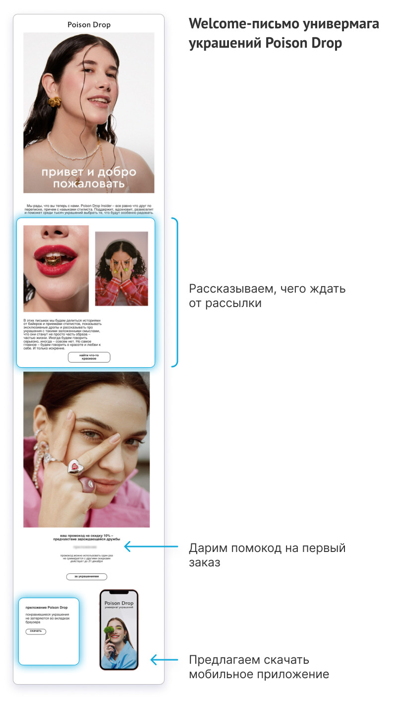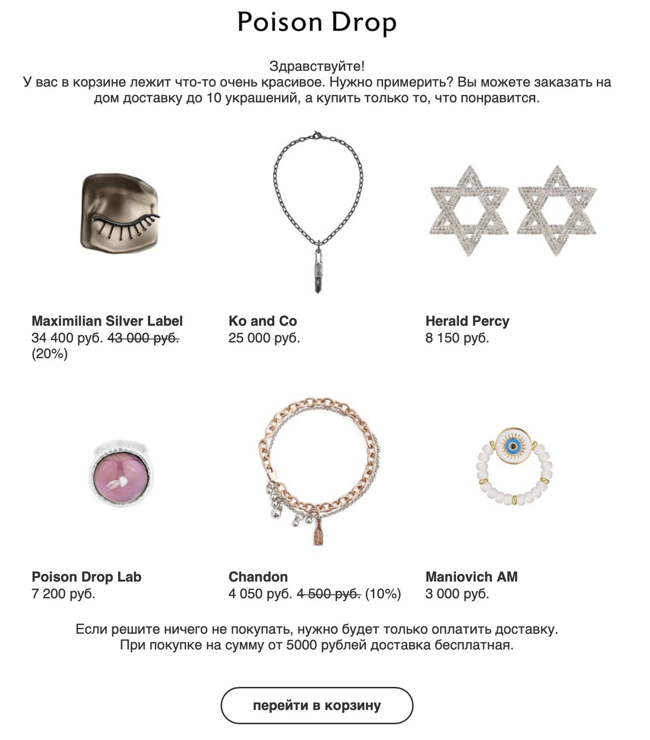 Отзыв универмага украшений Poison Drop о работе триггерных и массовых рассылок