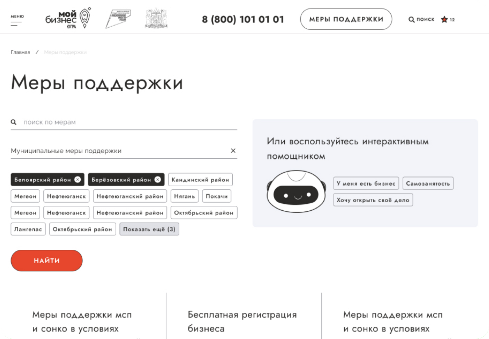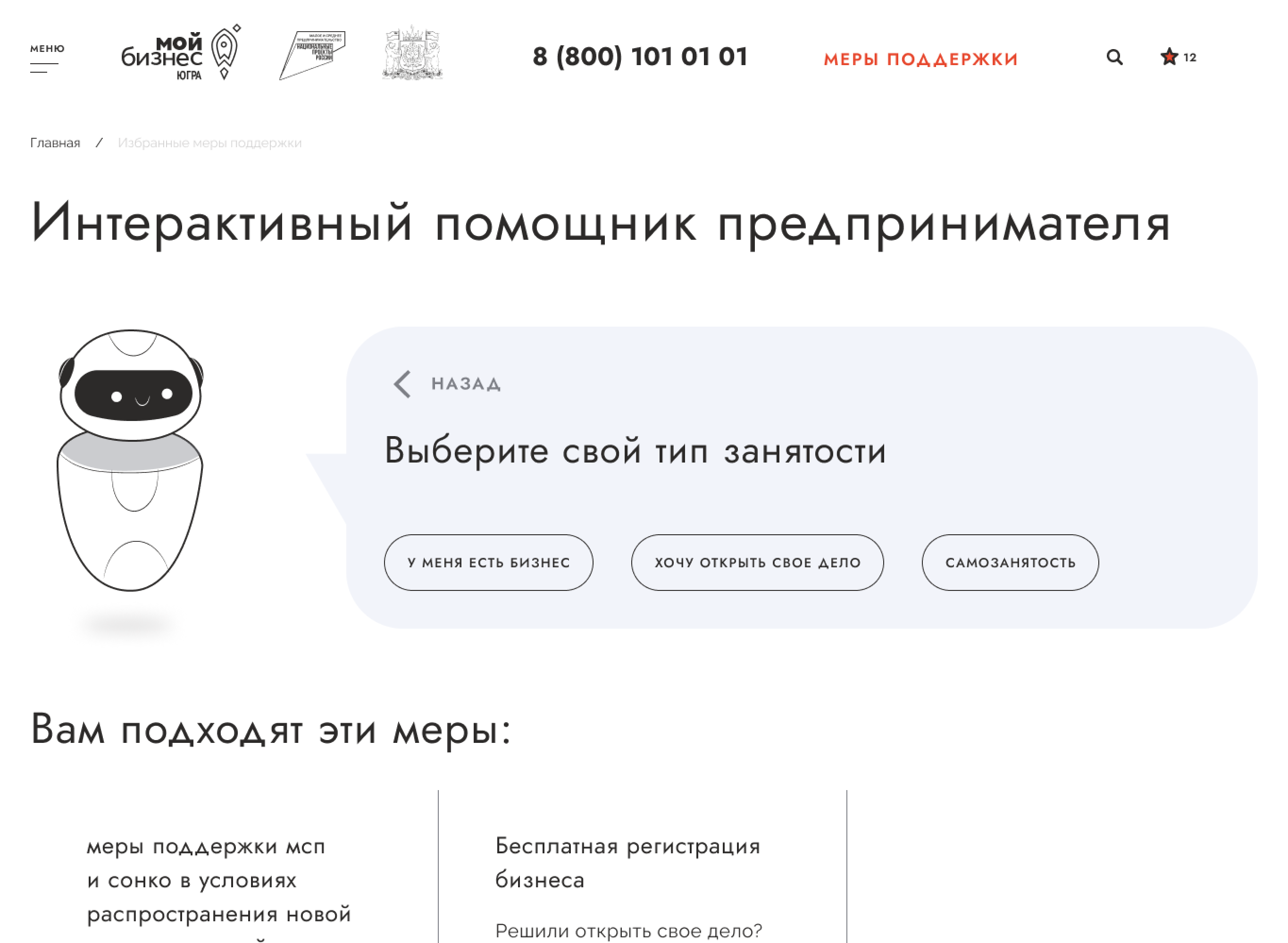 - эффективность и понятность интерактивного помощника в разделе «Меры поддержки»;