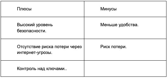 Холодные кошельки не имеют прямого подключения к интернету. Представляют собой как отдельные программы, на специальных устройствах, так и бумажные версии. Они отлично подходят, чтобы долго хранить криптовалюту.