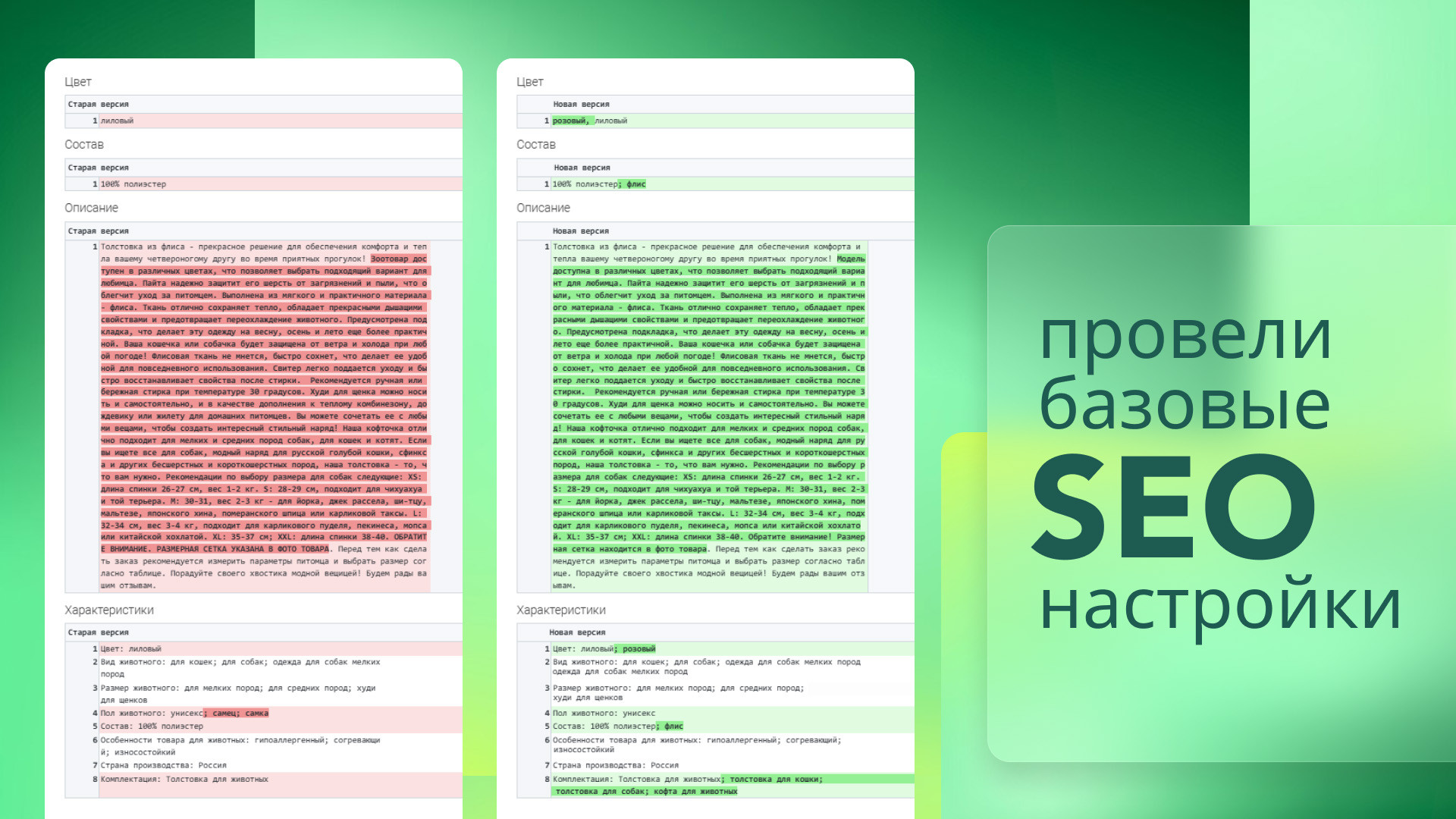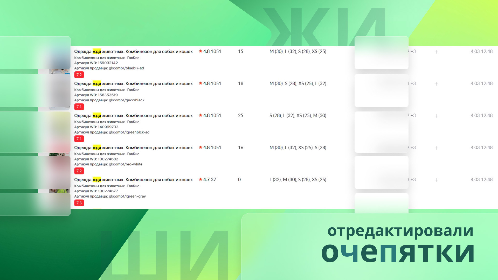 Сформировали таблицу с юнит-экономикой, которая учитывает в себе основные расходы магазина на WB, включая рекламные бюджеты и налоги. Во-первых, в ценообразовании важно учесть все расходы, чтобы итоговая прибыль соответствовала ожиданиям (а не только оборот продаж). Во-вторых, это удобный калькулятор, который позволяет быстро менять данные и получать нужные цены исходя из целей и меняющихся условий. Рассчитав unit-экономику, мы увидели возможность поднять цены и быть в рынке. Чтобы не обрушить карточки товара в поисковой выдаче, мы поднимали цены последовательно в течение месяца (метод «лесенки»). Такая стратегия позволила не только увеличить маржинальность продаваемой продукции, но и сохранить места в поисковой выдаче. Для этого мы делаем план повышения цены: поднимаем стоимость товара на 1-2% не чаще чем раз в 3-4 дня. Так повышение цены происходит плавнее и Wildberries не сильно снижает место в выдаче. Второй плюс этого метода: есть время посмотреть на реакцию покупателей, среагируют они на повышение цены или нет. Прежде чем запустить рекламу, мы проанализировали карточки на предмет seo-настроек и доработали: — в заголовки добавили ключевые слова, убрали лишнее; — скорректировали характеристики товаров: правильные базовые цвета, добавили базовый материал; — в комплектацию добавили варианты названий; — скорректировали категории, например, перенесли толстовки из категории «Футболки для животных» в категорию «Толстовки для животных»; — исправили ошибки в названиях товаров. Оптимизировали рекламную кампанию с помощью автобиддера и увеличили видимость товаров в поисковой выдаче. Поднятие цен всегда сопровождается падением товаров в поисковой выдаче, однако с помощью правильной рекламы нам удалось недорого компенсировать это падение и зафиксировать высокие позиции для популярных товаров. В рекламной стратегии мы выбрали занятие максимального количества средних позиций. Такой подход делает рекламные кампании не дорогими и позволяет охватить больше внимания покупателей. Постоянно оптимизировали рекламные компании, чтобы весь ассортимент товара был на главной странице по самым выгодным запросам. Ежедневно отслеживали рекламные запросы в автобиддере, так как есть много пересечений с другими категориями и исключали нерелевантные, например, «кофта с котиком», «леопардовая толстовка», «одежда с принтом кошечки» и пр: Это дало отличный результат — мы выдержали в октябре 2024 очень низкий ДРР 1.88% (средний по отрасли 10%). Также мы быстро настроили рекламные кампании для новинок, что дало быстрый подъем товара в выдаче и хороший старт продаж. — Добавили второе животное Мы видим, что потребители одежды — хозяева как кошек, так и собак. И если на изображении только собачка, владелец котика может не заметить такой товар при поиске. Мы добавили второе животное так, чтобы и те, и другие реагировали на наши креативы: Это было также важно потому, что в поисковых запросах покупатели часто используют породу и лучше реагируют на соответствующие изображения. На разные артикулы мы старались добавлять разные породы: сфинксов, тойтерьеров, пекинесов и пр. — Скорректировали инфографику: на обложке убрали лишнее, сконцентрировались на главном. У компании был слоган «Стильно и точка», мы предложили отказаться от него, т.к. смысловой нагрузки он не не