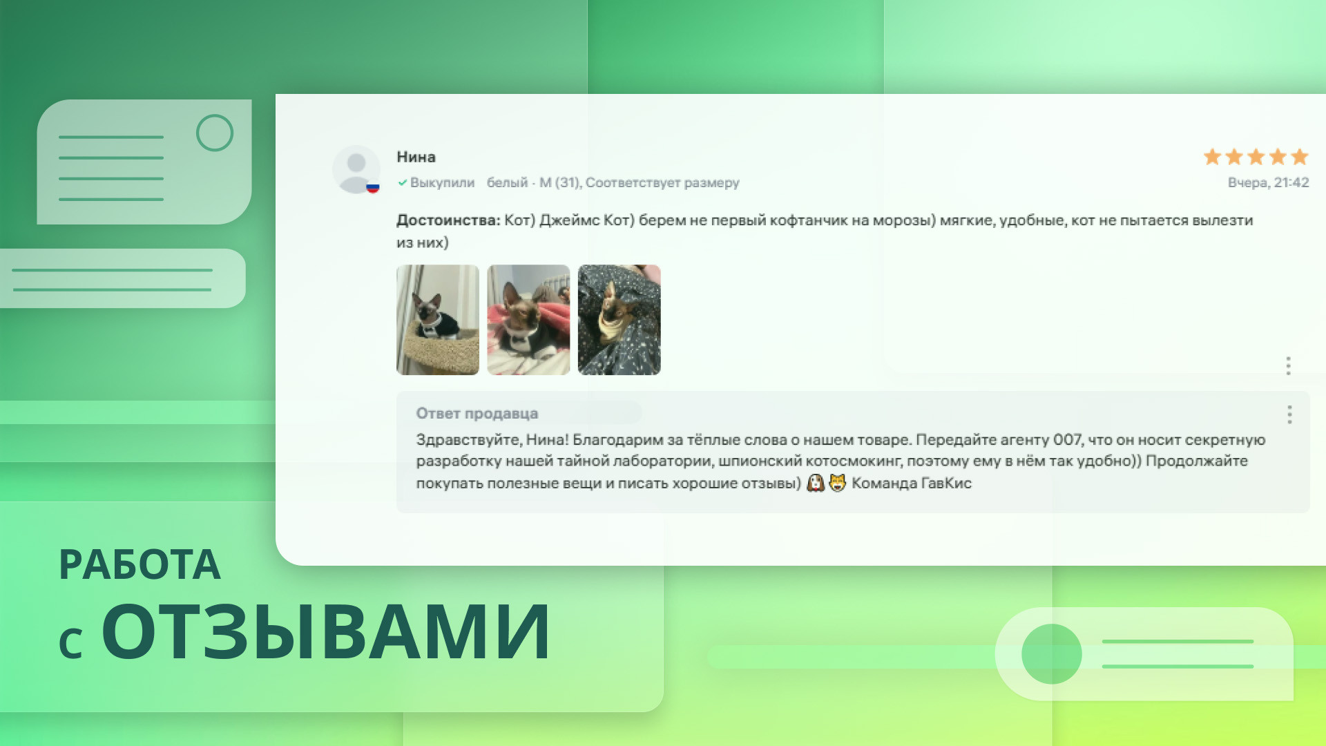 - Работа с отзывами и вопросами: рекомендации, шаблоны, ответы.