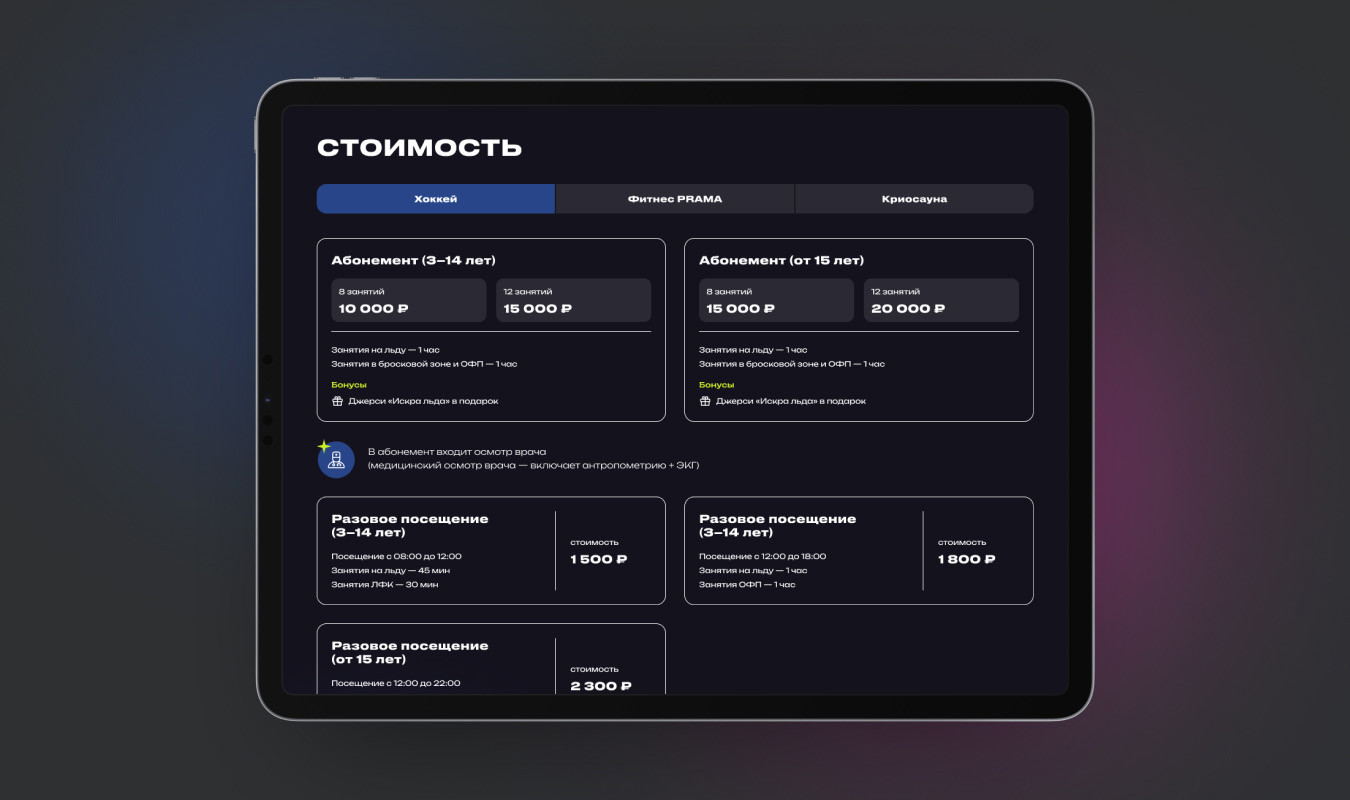 Кейс: Разработка сайта для фиджитал-центра «Искра льда»