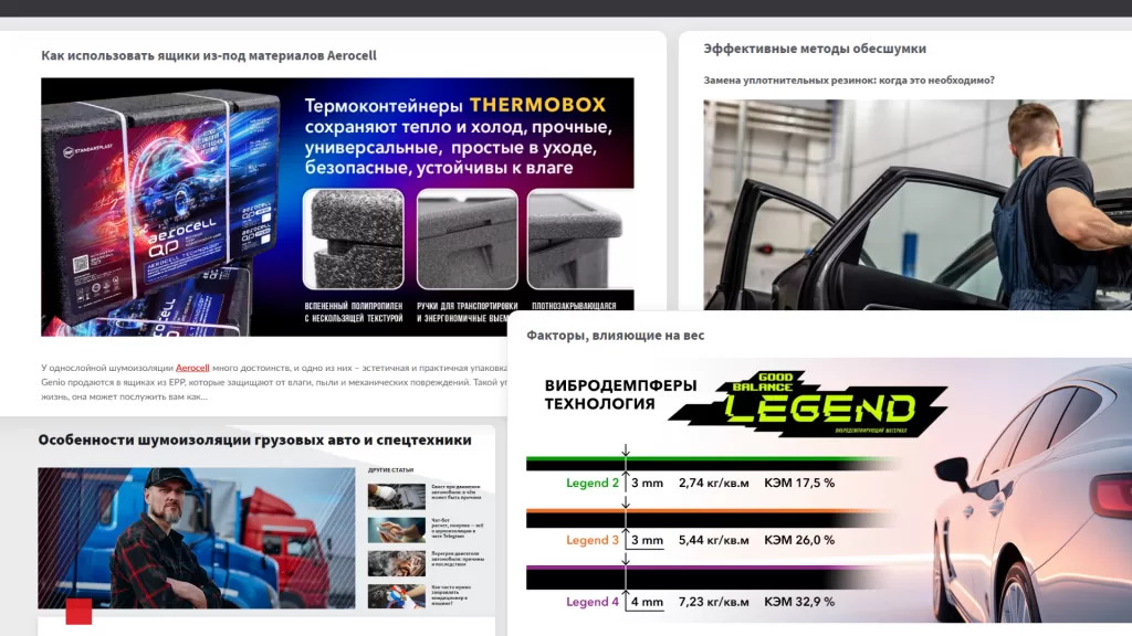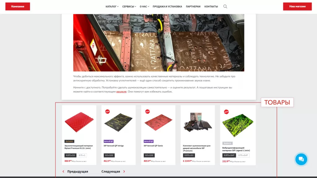 У компании был блог, но мы решили его усилить и целенаправленно оптимизировать под SEO, а также укрепить связь с каталогом — перенаправлять информационный трафик в коммерческий. Сайт — корпоративный. Он знакомит покупателей с продукцией компании, но при этом есть интернет-магазин, в котором можно заказать подходящую шумоизоляцию. Вот туда-то мы и решили перенаправить интерес.