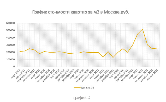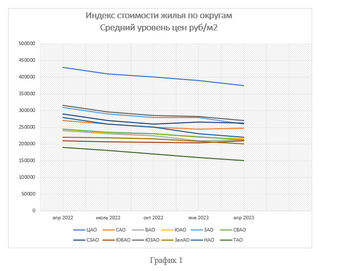 времени по районам Москвы. На данном графике (см. график 1) мы видим, что цены во