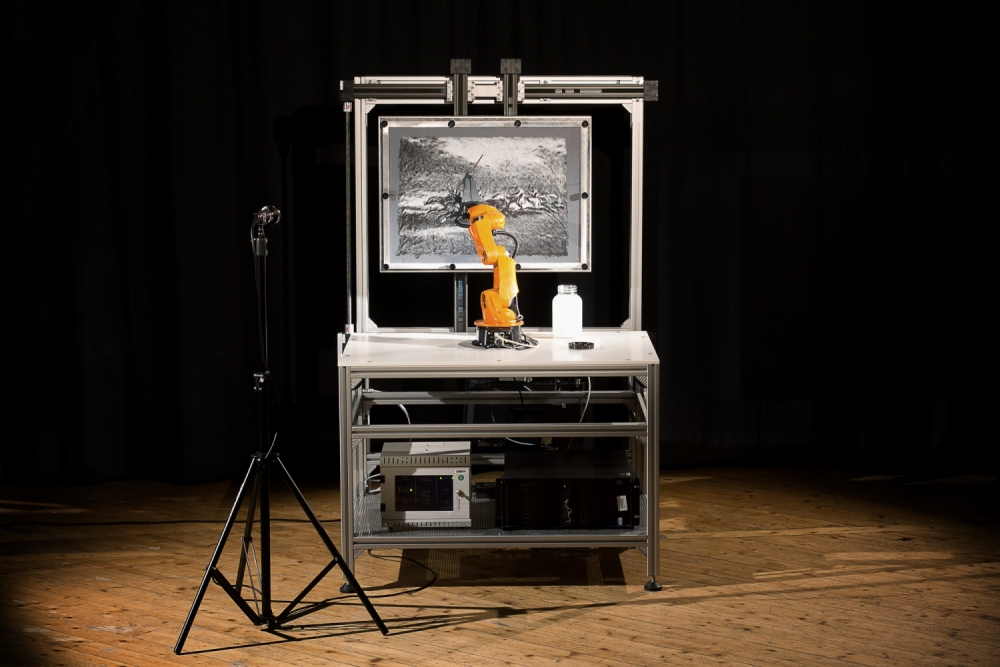 Робот Ван Армана выглядит абсолютно иначе по сравнению с eDavid. Он, скорее, подпадает под категорию телероботов, которые совместно с людьми создают произведения искусства.
