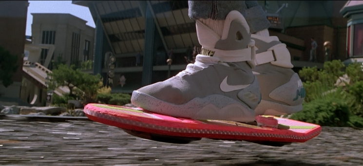 Все любители фантастики наверняка видели легендарную трилогию «Назад в будущее», и кроме машины времени, многие поклонники фильма хотели обладать еще двумя реквизитами: летающим скейтбордом и самозашнуровывающимися кроссовками, как у Марти Макфлая. В этом году все желающие имеют шансы обзавестись и тем, и другим. Ранее мы могли видеть рекламный ролик, в котором известный скейтбордист Тони Хоук вместе с актером Кристофером Ллойдом тестировали летающую доску из третьей части картины. Компания Nike, в свою очередь, уже начала активную работу над кроссовками Nike Air MAG, которые имеют подсветку и оснащены механизмом автоматической шнуровки.