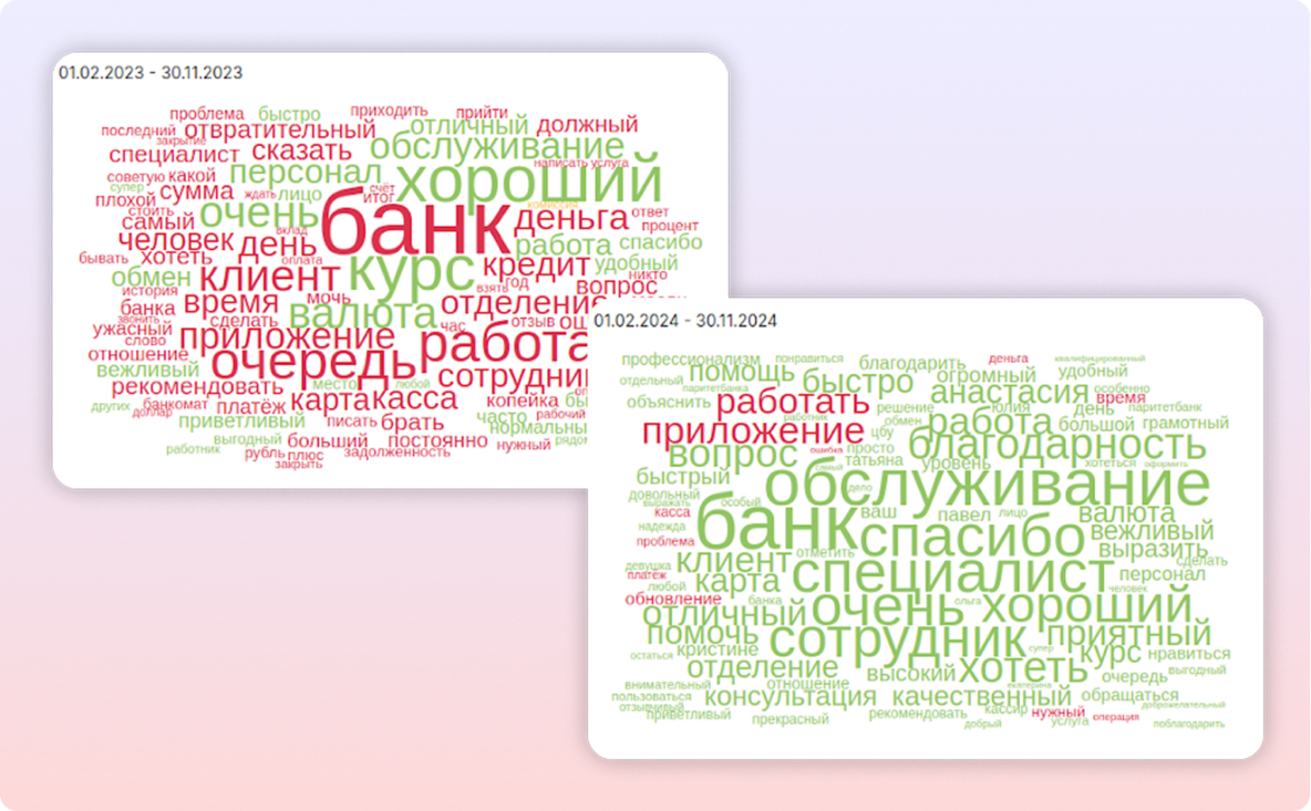 Изменения не заставили себя ждать в течение полугода. Команда навела порядок в карточках на картах, стала отвечать на все отзывы клиентов, благодаря тому, что собирала и отвечала на них из разных источников в едином окне RocketData. Сейчас карточки банка на картах выглядят так: В итоге средний рейтинг компании на всех площадках вырос, а сотрудники начали вовлекаться в процесс. Отчеты об отзывах стали привычной частью рабочих будней. За неполный год работы над проектом «Обратная связь»: — Сейчас наше «облако тегов» выглядит так, как мы себя и хотели бы видеть в глазах наших клиентов, — делится Татьяна Кузьменко. Следующий шаг — точечная работа с отделениями с рейтингом ниже 4,5. Проект «Обратная связь» стал частью стратегии банка и уже приносит ощутимый результат.
