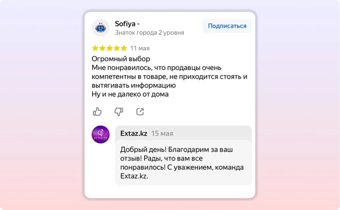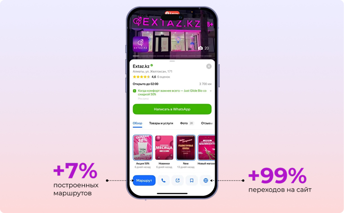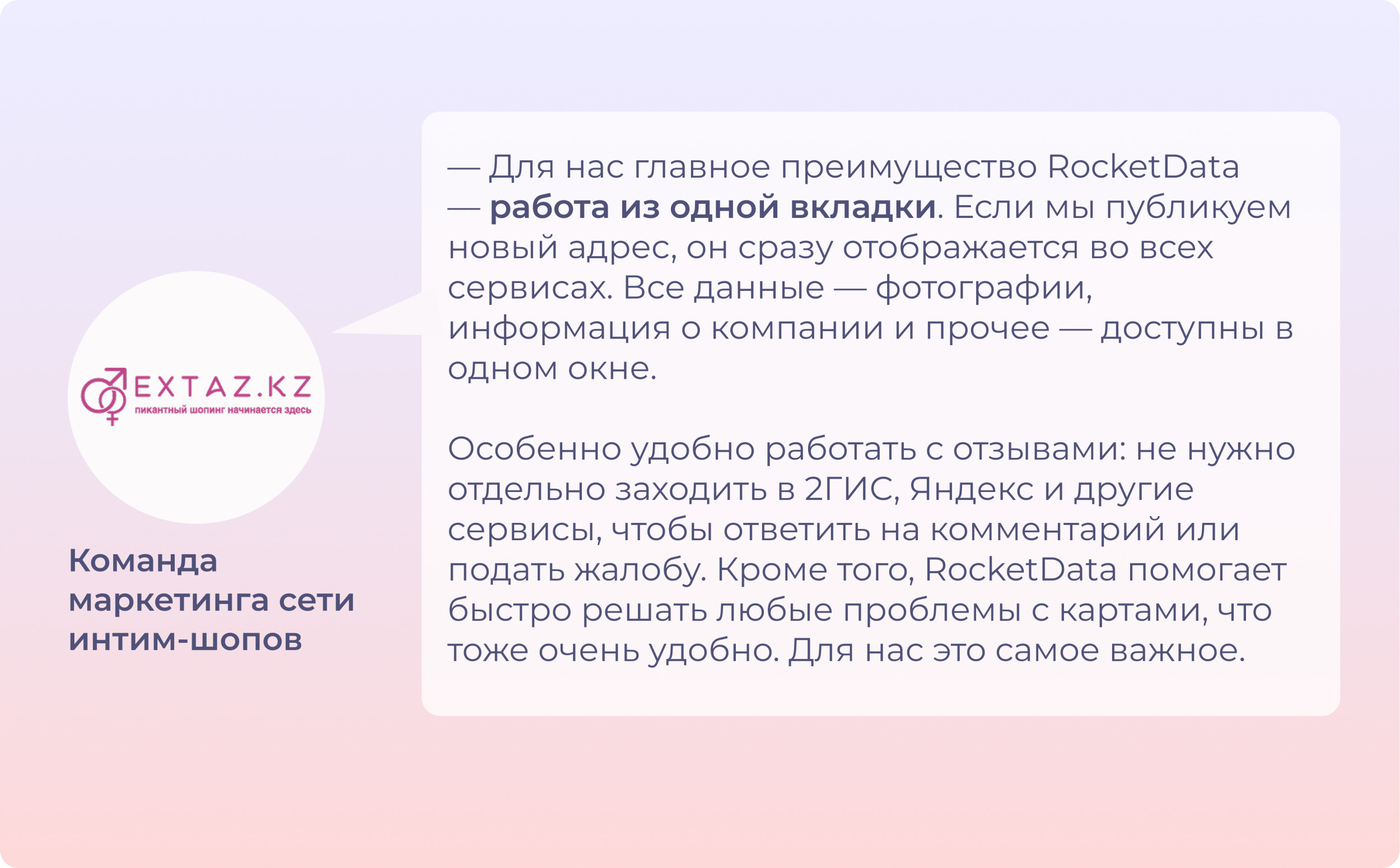 97% позитивных отзывов, а средний рейтингв карточках 2ГИС — 5,0: ключевые результаты работы Extaz.kz и RocketData