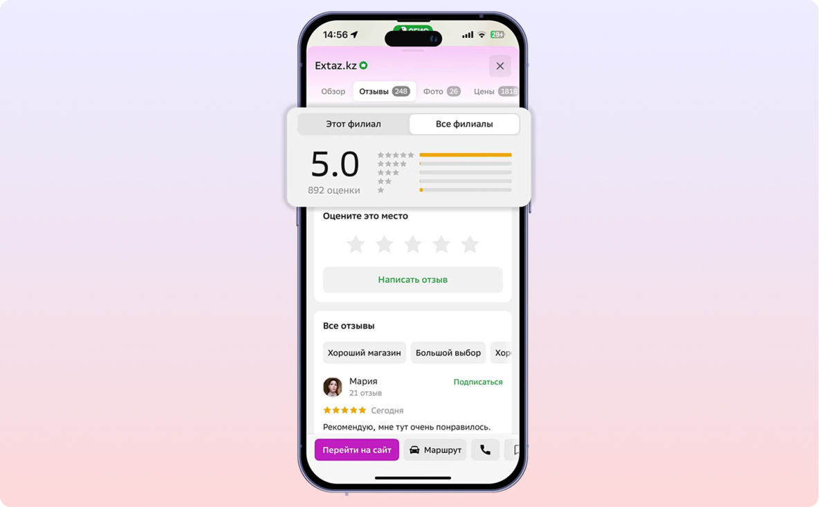 - Оперативно избавляться от негатива на картах и генерировать больше отзывов, чтобы удерживать рейтинг на высоком уровне.