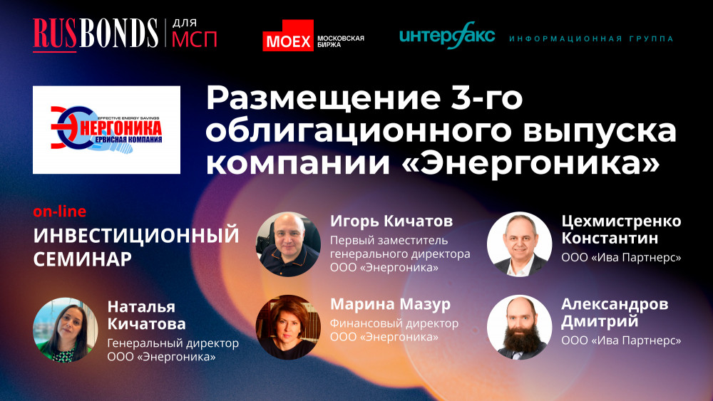 Спикеры семинара расскажут о текущей деятельности компании «Энергоника», ключевых финансовых результатах, а также представят планы по выпуску облигаций и дальнейшему развитию бизнеса.