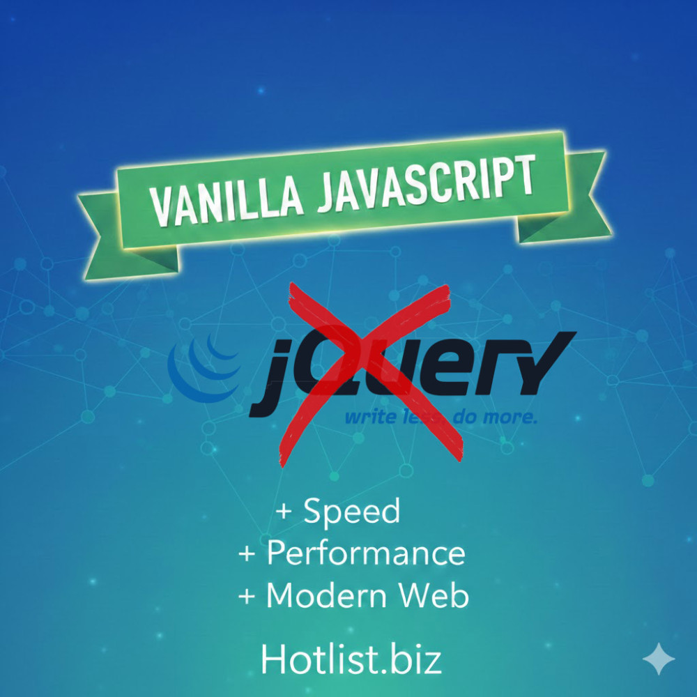Hotlist.biz официально завершили полный отказ от библиотеки Jquery в ядре системы. Все внутренние скрипты, интерфейсные компоненты и виджеты платформы переведены на чистый Vanilla JavaScript. Это стратегическое решение стало результатом масштабной технической модернизации, направленной на повышение скорости работы, стабильности и безопасности сайтов.