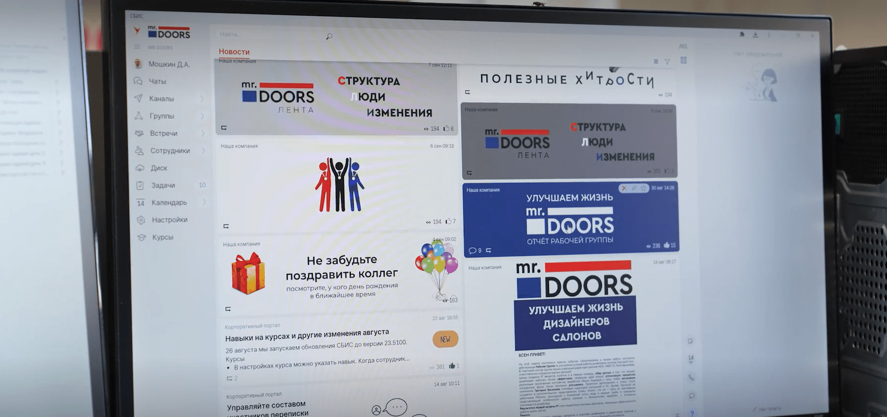 За 2023 год с помощью цифрового корпоративного решения сотрудники Mr.Doors провели 821 вебинар и 572 видеовстречи. Также с помощью программы специалисты учебного центра сократили временные затраты на оповещении штата об учебных событиях почти в 8 раз. Вместо 250 часов в год они затратили всего 30.