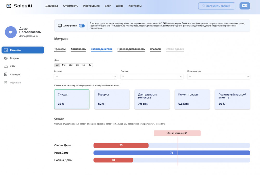 Повторяйте последние 3 слова, сказанные собеседником. Если вы разговариваете с клиентом, который говорит: «Я думаю о смене системы речевой аналитики», то вы повторите: «Так вы хотите сменить систему речевой аналитики?». Или если ваш начальник говорит: «Давайте просмотрим свежий отчет о продажах», вы можете ответить: «Конечно! Давайте рассмотрим свежий отчет о продажах».
