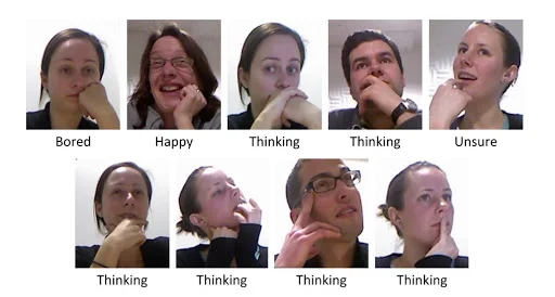 - Избегайте прикосновений к лицу: так легко опереться локтями на стол и коснуться своего лица (виноват!). А когда дело доходит до видеозвонков, исследования показывают, что люди склонны прикасаться к лицу, когда они нервничают. Это может проявляться в различных некрасивых действиях, связанных с касанием лица, таких как дерганье за мочку уха, почесывание носа и даже покусывание губ. Поэтому, если вы хотите отзеркаливать, чаще всего используйте жесты рук и избегайте прикосновений к лицу. И обязательно посмотрите на изображение из исследования ниже, чтобы узнать, что ваши руки могут рассказать о вас: