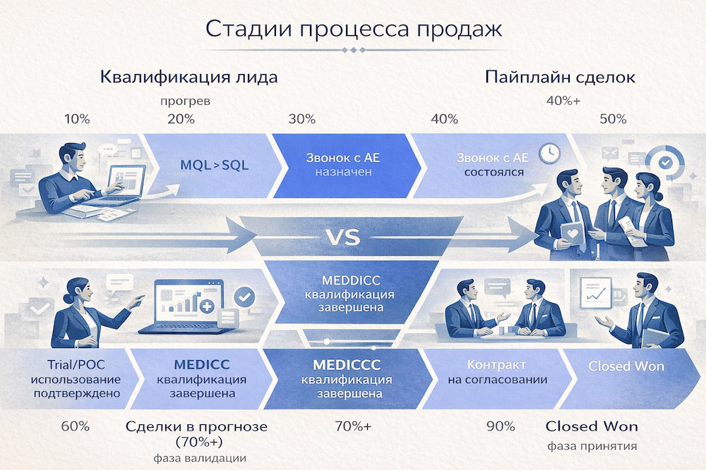 Российский B2B сейчас переживает три трансформации одновременно: импортозамещение, увеличение штрафов на все, массовое внедрение AI и смену поколений покупателей. Всё это накладывается друг на друга и создаёт хаос. Подробный разбор этих трендов управления продажами на 2026 год я делал в отдельной статье, там много цифр и прогнозов. Здесь расскажу про конкретный инструмент, который помогает навести порядок.