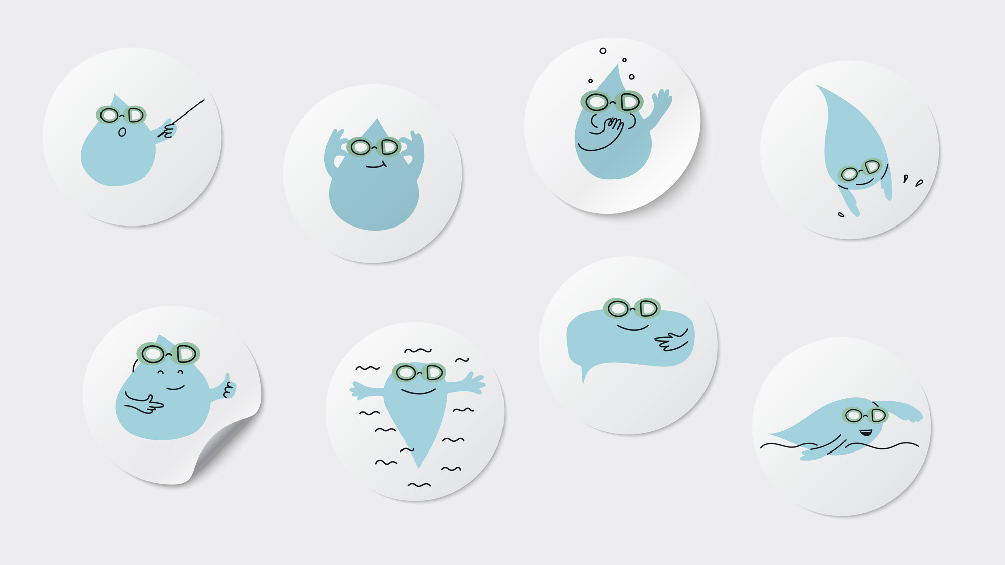 и настроение бренда. Главный герой — голубая капля, которая как будто за ручку