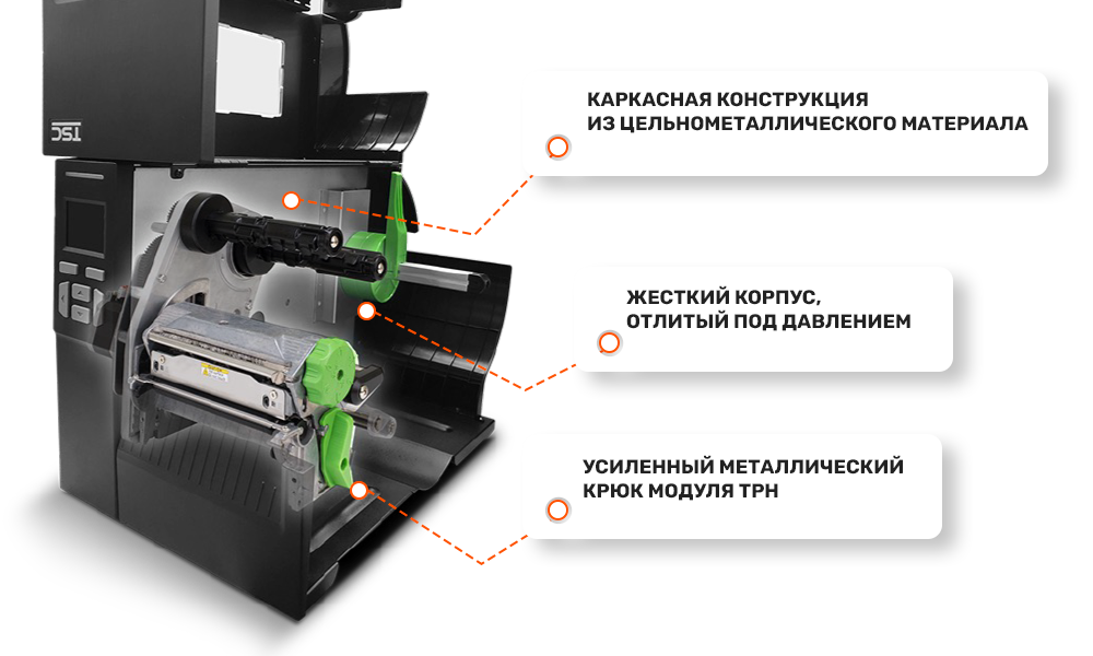 Промышленные принтеры имеют производительность от 20000 этикеток в день. Эти габаритные устройства с прочным корпусом способны непрерывно печатать большие тиражи этикеток и предназначены для использования на крупных складах и в гипермаркетах. Максимальная ширина печати до 4, 6 и 8 дюймов.