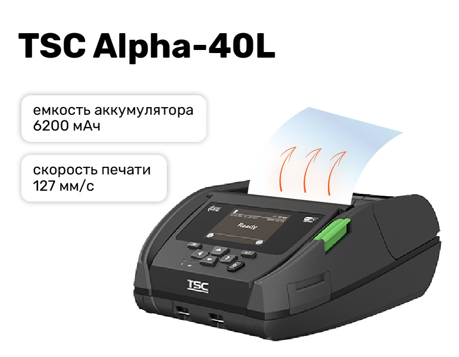 TSC Alpha-40L — простой и удобный в использовании принтер этикеток с возможностью дистанционного управления благодаря системам SOTI Connect и TSC Console.