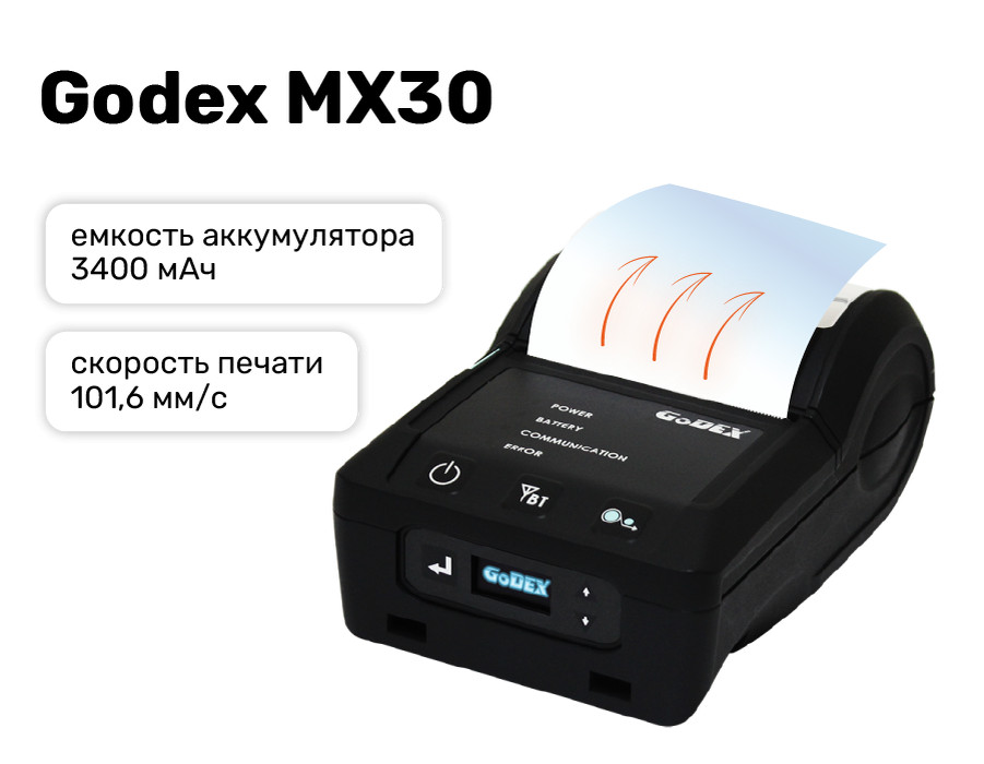 Godex MX30 — мощный и компактный принтер этикеток с увеличенным временем непрерывной работы.