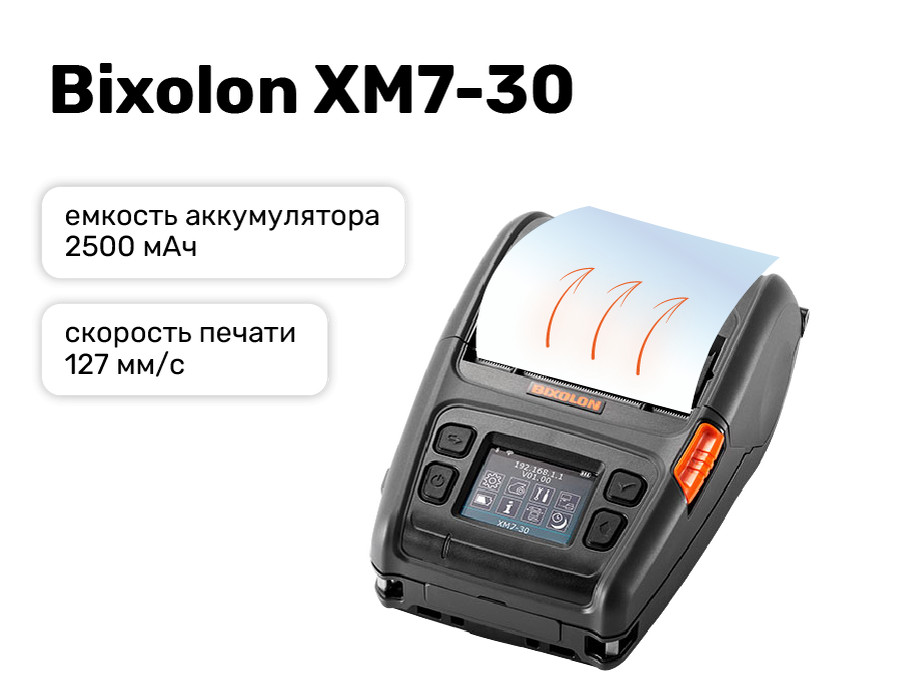 Bixolon XM7-30— прочный 3-дюймовый принтер премиум-класса с высокой скоростью печати и мощной батареей.