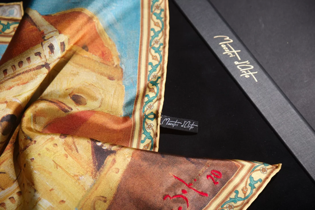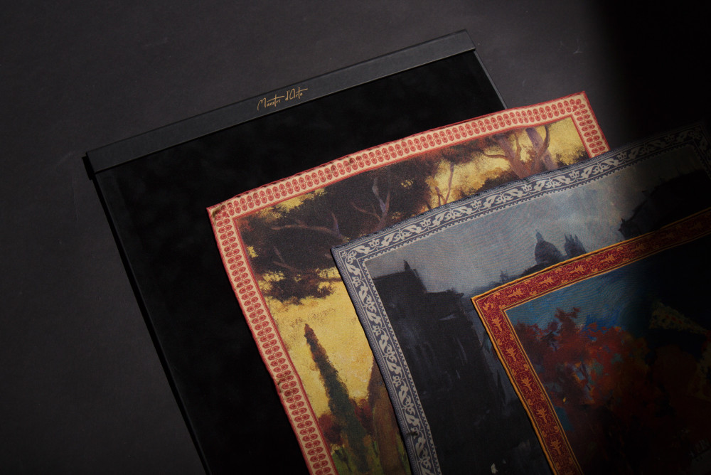 Maestri d’Arte — премиум-бренд нагрудных платков с детальным перенесением живописи молодых российских художников. Производство находится в Великобритании, а целевая аудитория — ценители моды и искусства по всему миру.