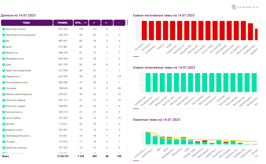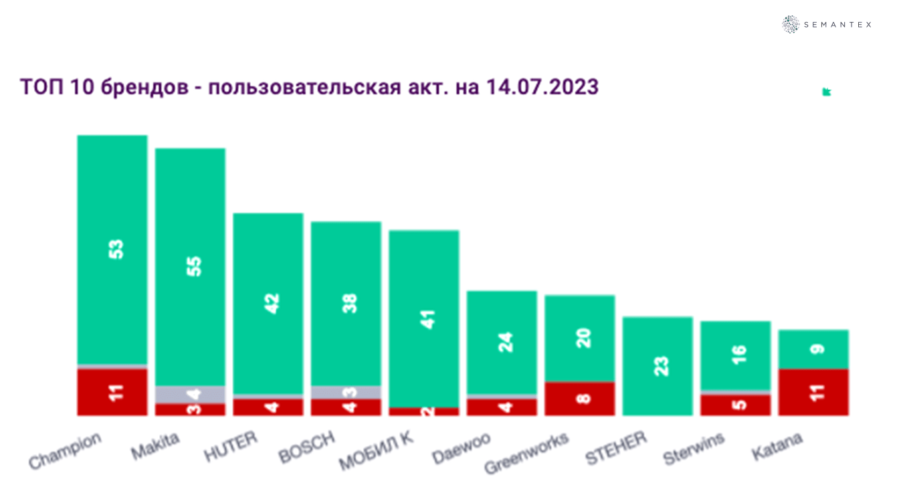 Почему важно анализировать поисковую выдачу? Во-первых, поисковики — это бесплатный и простой способ получения информации для пользователя (он же потенциальный потребитель). Во-вторых, это один из ключевых инструментов маркетолога и пиарщика, с помощью которого можно проанализировать поисковый спрос и оптимизировать предложение. А это уже ведет к попаданию бренда на верхние строчки выдачи по стратегически важным для вас ключевым запросам. Итак, в ходе исследования мы проанализировали поисковую выдачу (далее «ПВ») Яндекс и Google ТОП-10 (мобильная и Desktop версии) по следующим ключевым запросам: За период с 14.06.2023 по 14.07.2023 поисковый спрос по заданным ключам составил 242 156. Каждая поисковая система использует свои алгоритмы для поиска информации и показа пользователю наиболее актуальных и востребованных данных. Например, одна и та же страница сайта может находиться на разных позициях Google и Яндекса при использовании одних и тех же ключевых слов. Сайты, отображающиеся на первой странице, оказывают наибольшее влияние на пользователей и имеют наибольший трафик, поэтому при разработке контент-стратегии необходимо в первую очередь работать с ТОП-ресурсами и максимально насыщать их релевантными данными о вашем бренде. Самыми популярными площадками при поиске информации о лучших газонокосилках стали: Весь перечень ТОП-ресурсов можно увидеть в полной версии отчета. Для получения максимально полной аналитической картины была проведена классификация всех ресурсов выдачи ТОП-10 по их типам: пользователи видят интернет-магазины, информационные порталы и маркетплейсы. Часто встречающийся тип контента на ресурсах ПВ — статья, страница с отзывами, страница с обсуждениями. Также при разработке контент-стратегии обратите особое внимание на площадки, где пользователи чаще всего ищут информацию по репутационным ключевым запросам: например, «газонокосилка отзывы» и «газонокосилка электрическая отзывы». В нашем случае при исследовании рекомендаций поисковая выдача несколько отличается от той, которая представлена выше (а именно, приоритетность распределения площадок). Самые популярные площадки при поиске отзывов о газонокосилках: Большинство потребителей начинают поиск информации о продукте (бренде) с общих запросов в поисковых системах. Они ищут полную и актуальную информацию и обычно не переходят на отдельные рекламные предложения. Просмотрев несколько сайтов в органической выдаче, потребитель понимает, что количество предложений огромно, и начинает задавать более конкретные запросы с характеристиками товара, услуги или бренда. Всего в выборку в ходе исследования попало 47 наименований брендов: исходя из данных общего трафика у каждого сформировалась своя доля присутствия. Рейтинг газонокосилок по доле присутствия в выдаче: Весь рейтинг охватных брендов доступен в полной версии аналитического отчета. Самые обсуждаемые среди пользователей бренды поисковой выдачи: Самую позитивную оценку пользователей получил Karcher. Самый нейтральный — Калибр. Бренд, у которого доля негативных комментариев выше, чем у других, — Worx. Этот раздел наглядно демонстрирует, в каком контексте упоминается бренд, какой из продуктов пользователи обсуждают чаще, и в каком ключе идет обсуждение. В отношении газонокосилок самыми популярными темами обсужд