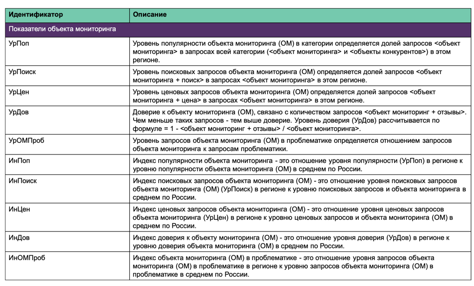 - индексы популярности и доверия к брендам в регионах и в разрезе проблематики,
