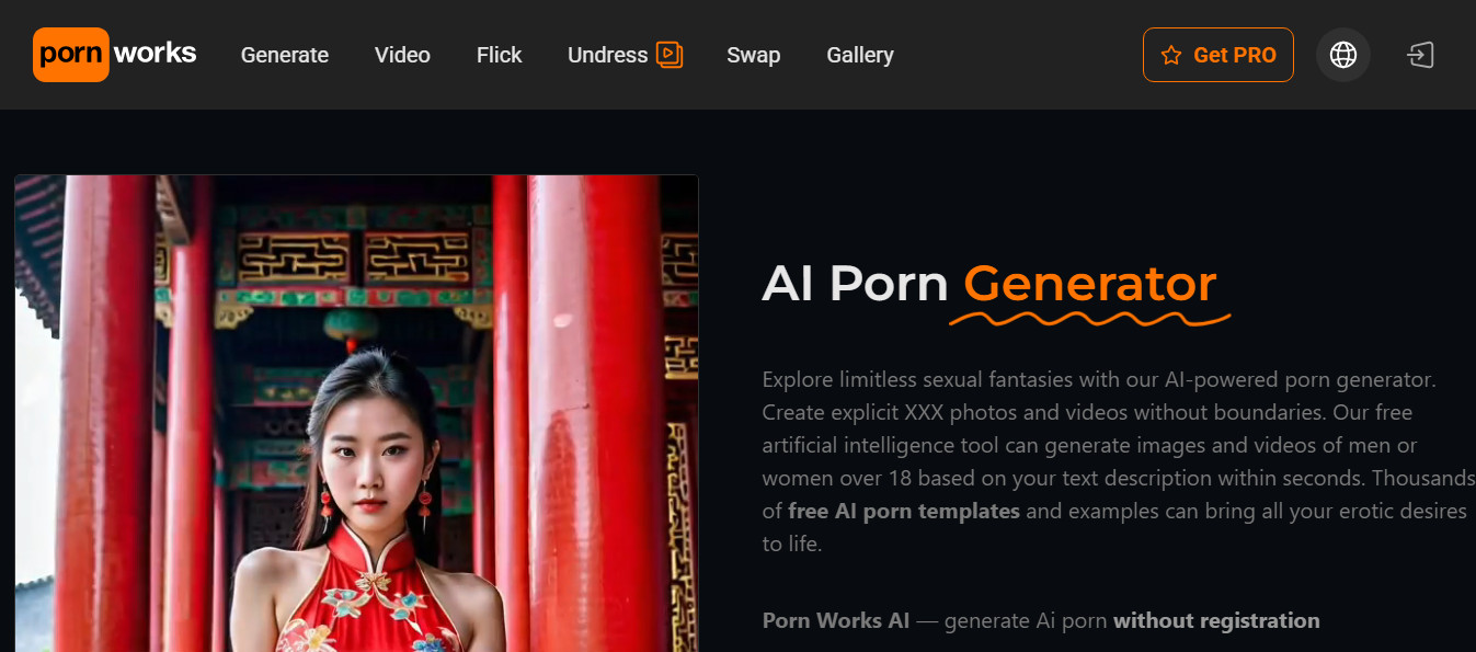 Pornworks.com — полный генератор контента 18+ сделанный нейросетью, включая видео и brush-редактирование.