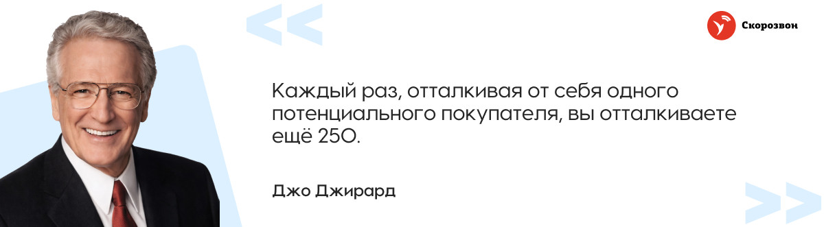 - Не забывайте поддерживать контакт с клиентом после сделки (Джо Джирард).