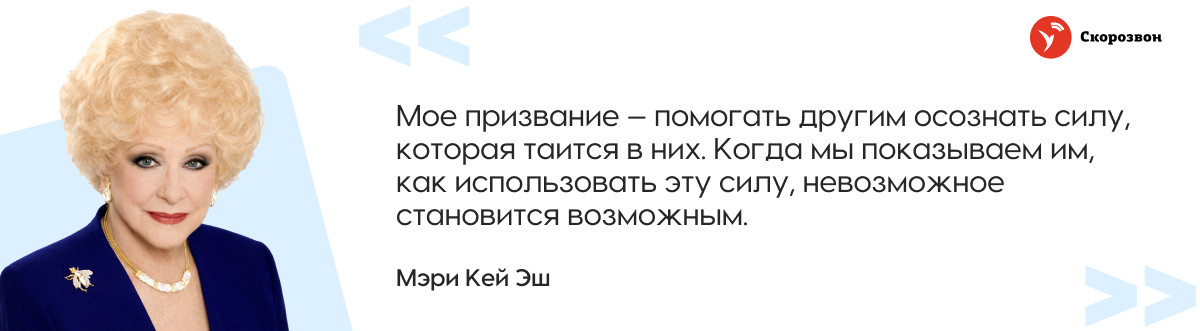 Мэри Кей Эш (1918–2001) — американская предпринимательница, основательница компании Mary Kay Cosmetics. В 1963 году она запустила бизнес с капиталом 5 000 долларов. Сейчас это международная сеть прямых продаж с миллионами независимых консультантов по всему миру.