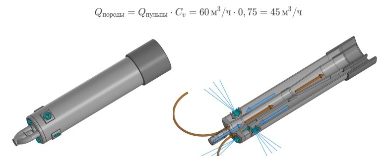 Наиболее эффективным скважинным гидромониторно-гидроэлеваторным снарядом (СГГС) для работы на глубинах до 35 м в малом горном бизнесе признан осевой снаряд «труба в трубе» с двумя гидромониторными горизонтальными насадками, одной вертикальной и центральной гидроэлеваторной насадкой.