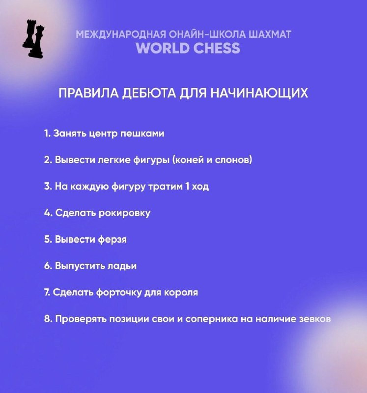 8. После каждого хода смотрите не напал противник на незащищенную фигуру, не зевнул свою, не угрожает ли поставить вам мат.