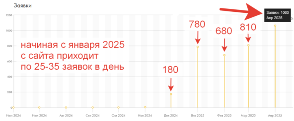 Продвижение питомника собак: 1063 заявки с SEO за апрель 2025