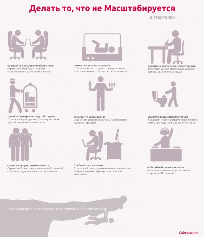 Каждый стартап нуждается в пользователях. Если вы уже работающий стартап, то будете делать все, чтобы получить клиентов: ходите к ним в дома, как миссионер, сидите с ними и помогаете создавать или настраивать свой сервис на их компьютере. Что делают люди, которые «играют в стартап»? Они отправляют вам ссылку на свой сервис. Оба вариант похожи на получение клиентов, за исключением того, что в первом варианте вы в буквальном смысле заставляете пользоваться сервисом, в то время как во втором варианте люди просто отправляют ссылку в надежде что пользователи остальные шаги сделают самостоятельно. Как думаете, какой вариант наиболее эффективный?
