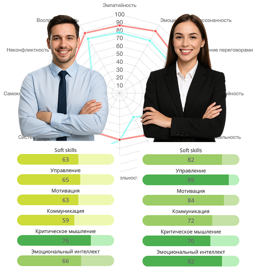 компания не придумывает критичные компетенции заранее. Сначала мы проводим диагностику действующих руководителей по единой модели компетенций SkillCode — это 46 параметров, объединённых в пять кластеров: Диагностика проводится онлайн, по глубинным психометрическим методикам, а не «по экспресс-опросникам на 10 минут». На выходе у компании появляется сопоставимый массив данных по всем управленцам в единой системе координат. Второй шаг — связать эти данные с реальностью бизнеса. На стороне компании мы выделяем группу руководителей, которые: Затем мы сопоставляем их профили в системе SkillCode и смотрим, какие компетенции у этих людей устойчиво выше, чем у остальных. Так формируется эталонный профиль роли именно в этой компании: Отдельно строятся модели под разные роли: продажи, операционный блок, продукты, региональное управление, проектный офис и т.д. Когда эталонные модели построены, оценка перестаёт быть абстрактным упражнением. Система SkillCode позволяет: Здесь оценка превращается в язык для обсуждения управленцев: не «мне кажется, он слабый», а «у него низкое управление конфликтами и слабая системность при высокой ориентации на результат — в нашей реальности это риск». Отдельный момент — оценка не должна быть «инкубаторской процедурой раз в три года». В SkillCode компании могут: Таким образом оценка превращается в контур управления человеческим капиталом, а не разовый HR-проект ради галочки в корпоративном отчёте. Если собрать опыт внедрения SkillCode в разных компаниях, можно выделить несколько обязательных требований к системе оценки. 1. Объективность.