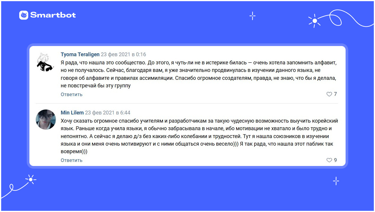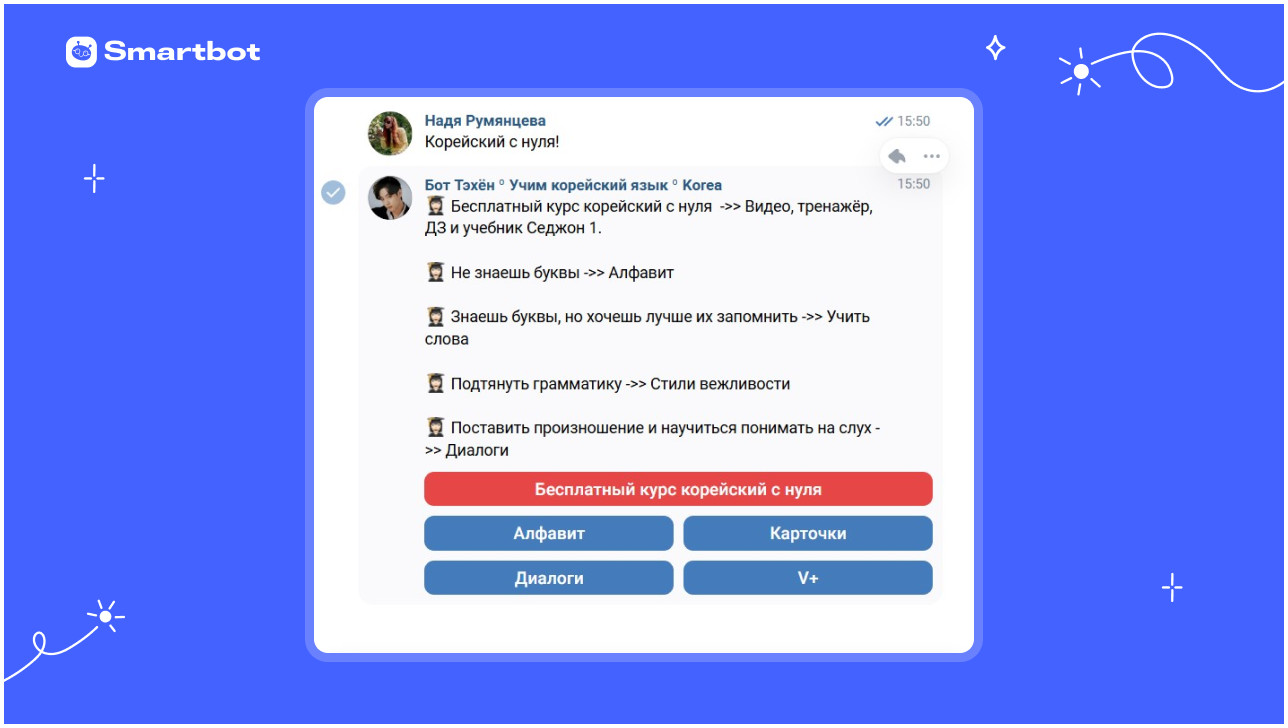 «MVP помог репетитору раскрутить сообщество, найти новых клиентов и запустить в боте платные курсы, которые приносят дополнительный доход. Кроме того, она открыла собственную школу изучения корейского языка»