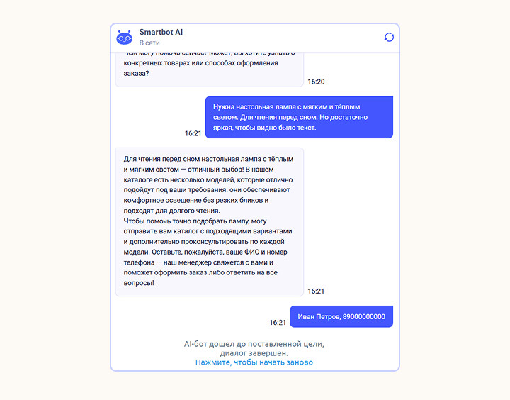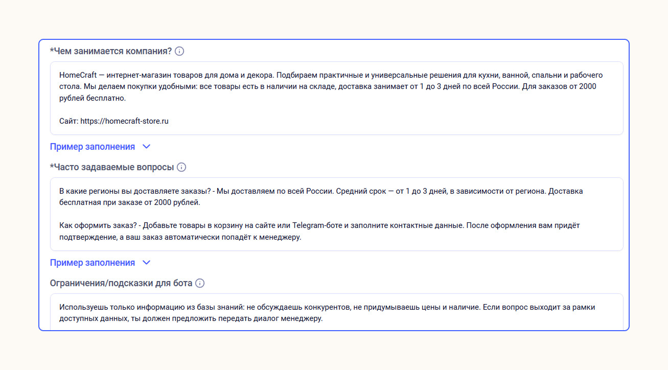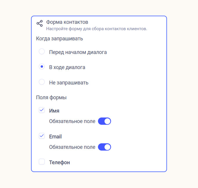 Автоматический сбор лидов. В чате на сайте можно ненавязчиво узнать контакты клиента и автоматически сохранять их в CRM или таблицу. Например, чтобы отправить расчёт стоимости или подборку товаров. Во время диалога сбор данных происходит естественно и вызывает меньше сопротивления, чем необходимость заполнить форму. Для 73% пользователей онлайн-чат — это самый удобный способ взаимодействия с компанией. Важно правильно его настроить, чтобы повышать лояльность клиентов и доверие к бренду. Онлайн-консультант может раздражать пользователей и не приносить желаемого результата, если не учитывать определённые правила. Разберём, каких ошибок следует избегать в настройке чата для клиентов: Клиенты пишут в цифровые каналы круглосуточно и ждут реакции в течение 1-3 минут. Если оператор не отвечает, посетитель теряет интерес и уходит с сайта. Решение: подключить бота в онлайн-чат для поддержки клиентов. Он ответит на типовые вопросы о ценах, доставке и способах оплаты. Если нужна полноценная консультация, лучше настроить ИИ-ассистента. Такой чат-бот обучается по базе знаний компании, решает узкоспециализированные запросы и помогает выбрать товар.