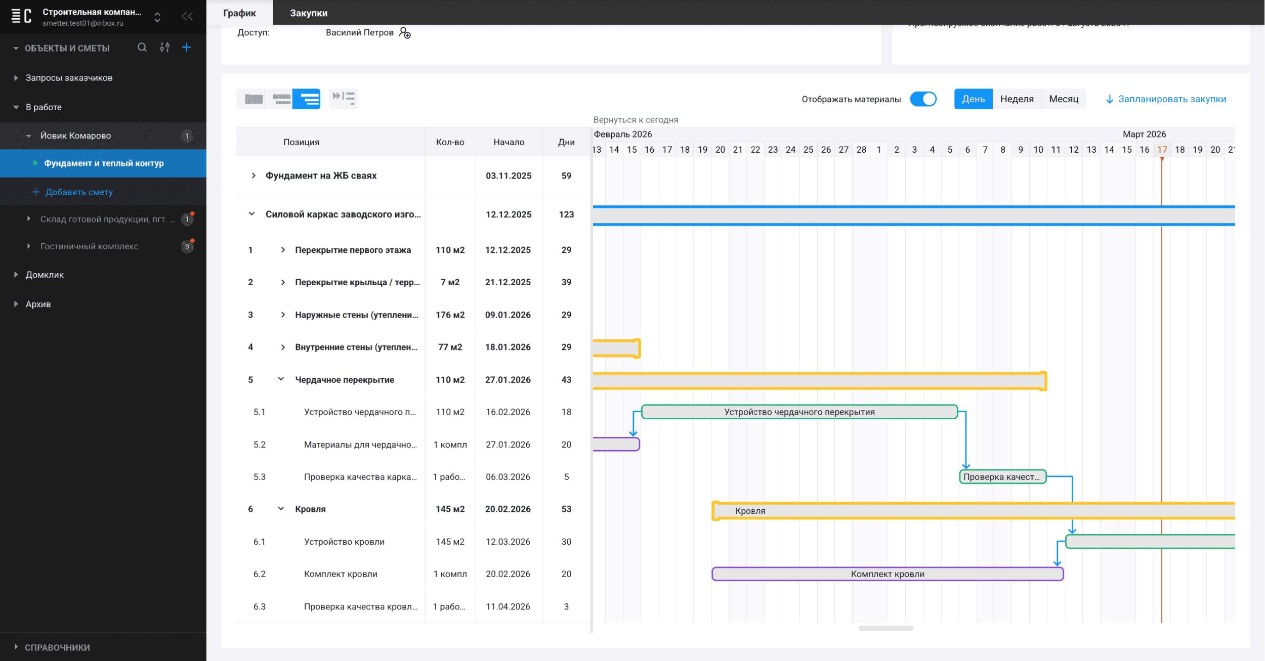 — График в смете — показывает последовательность работ и закупок.