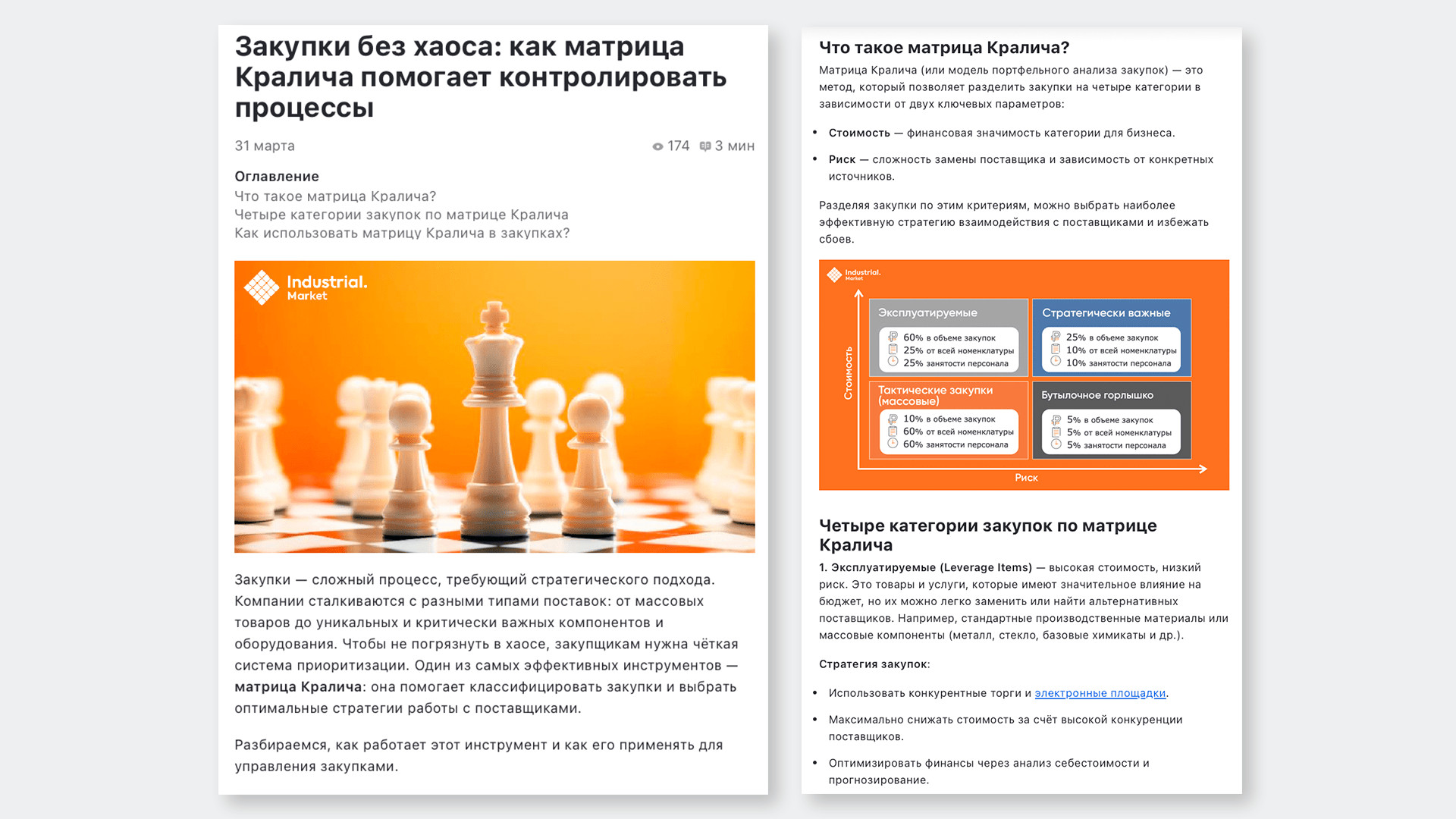 Цель контент-стратегии — сделать закупки понятной темой и превратить Industrial.Market в эксперта, который помогает закупщикам решать задачи проще и быстрее.
